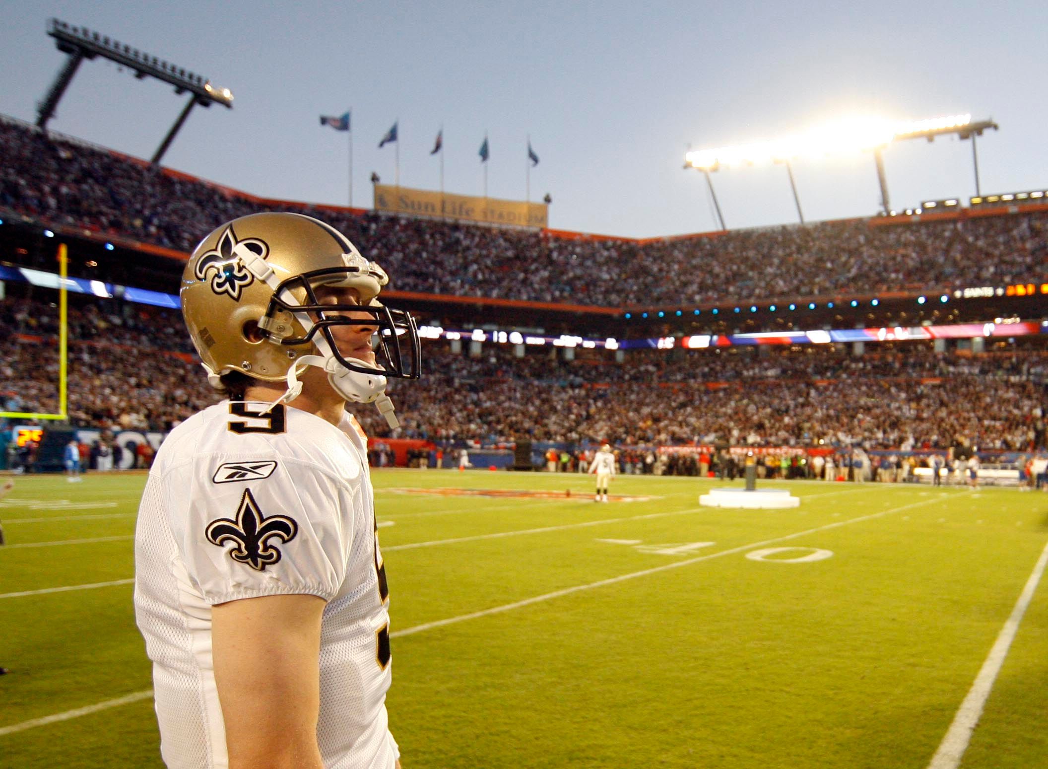 Saints quarterback Drew Brees before Super Bowl XLIV against the Colts in Miami. John David Mercer/Imagn Images