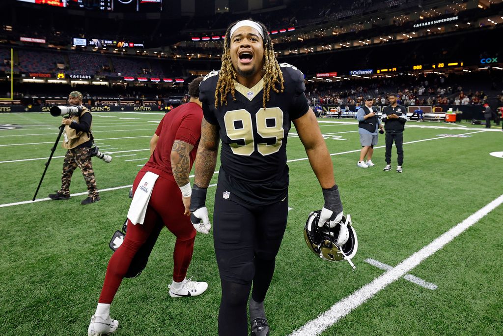 New Orleans Saints defensive end Chase Young (99) rushes the passer during an NFL football game against the Tampa Bay Buccaneers, Sunday, Jan 5, 2025, in Tampa, Fla. AP Photo/Peter Joneleit