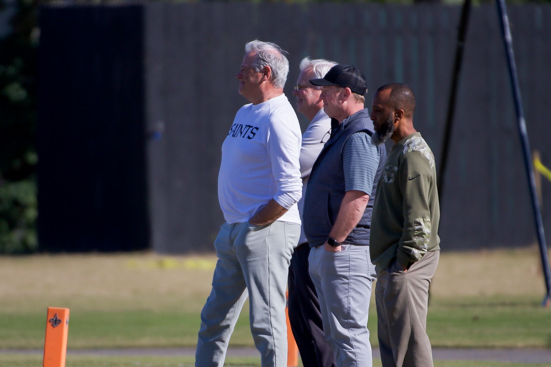 Mickey Loomis, Khai Harley and Jeff Ireland look on at a recent practice. Edwin Goode/NewOrleans.Football