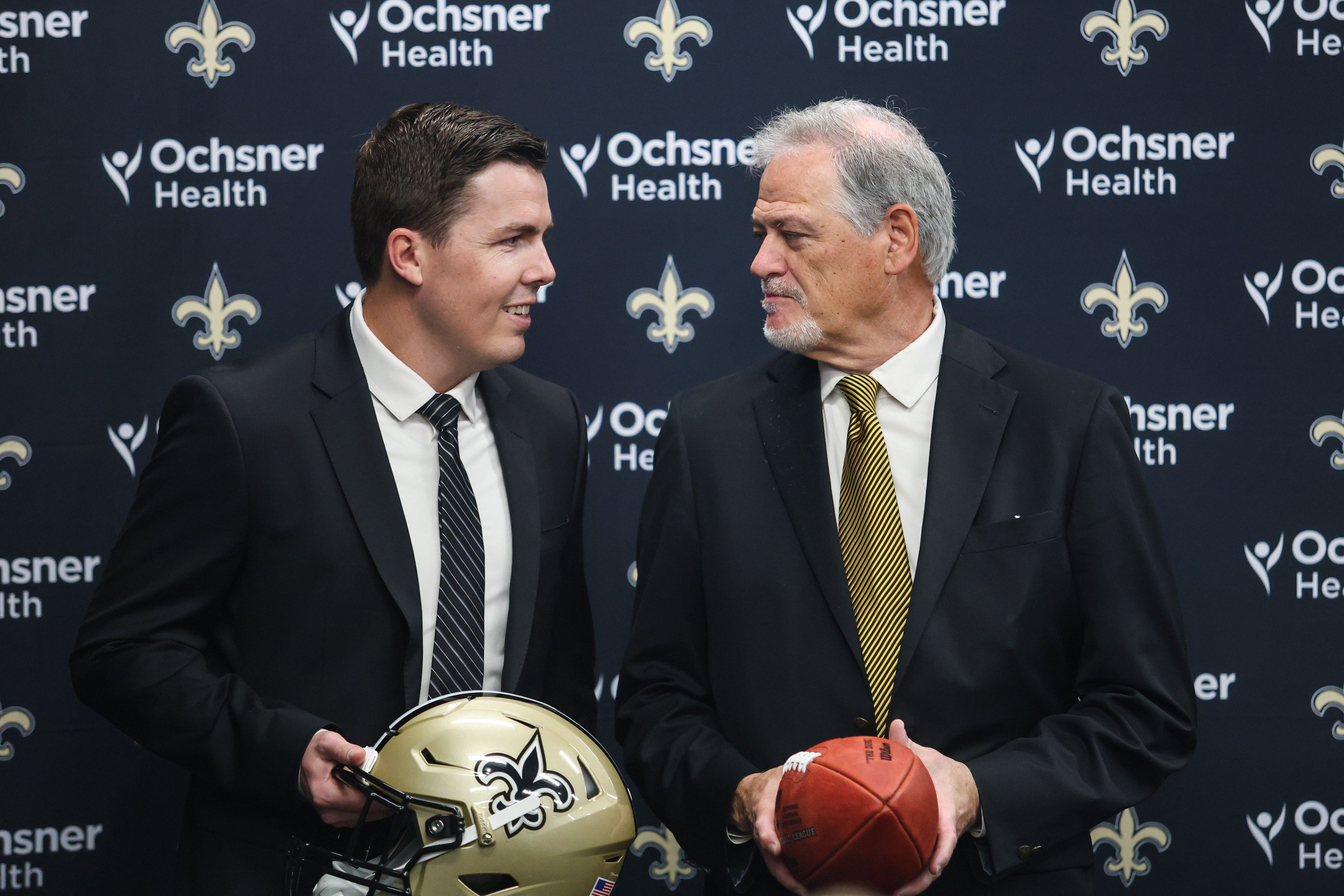 Saints Head Coach Kellen Moore and GM Mickey Loomis Brandon Thomas/NewOrleans.Football