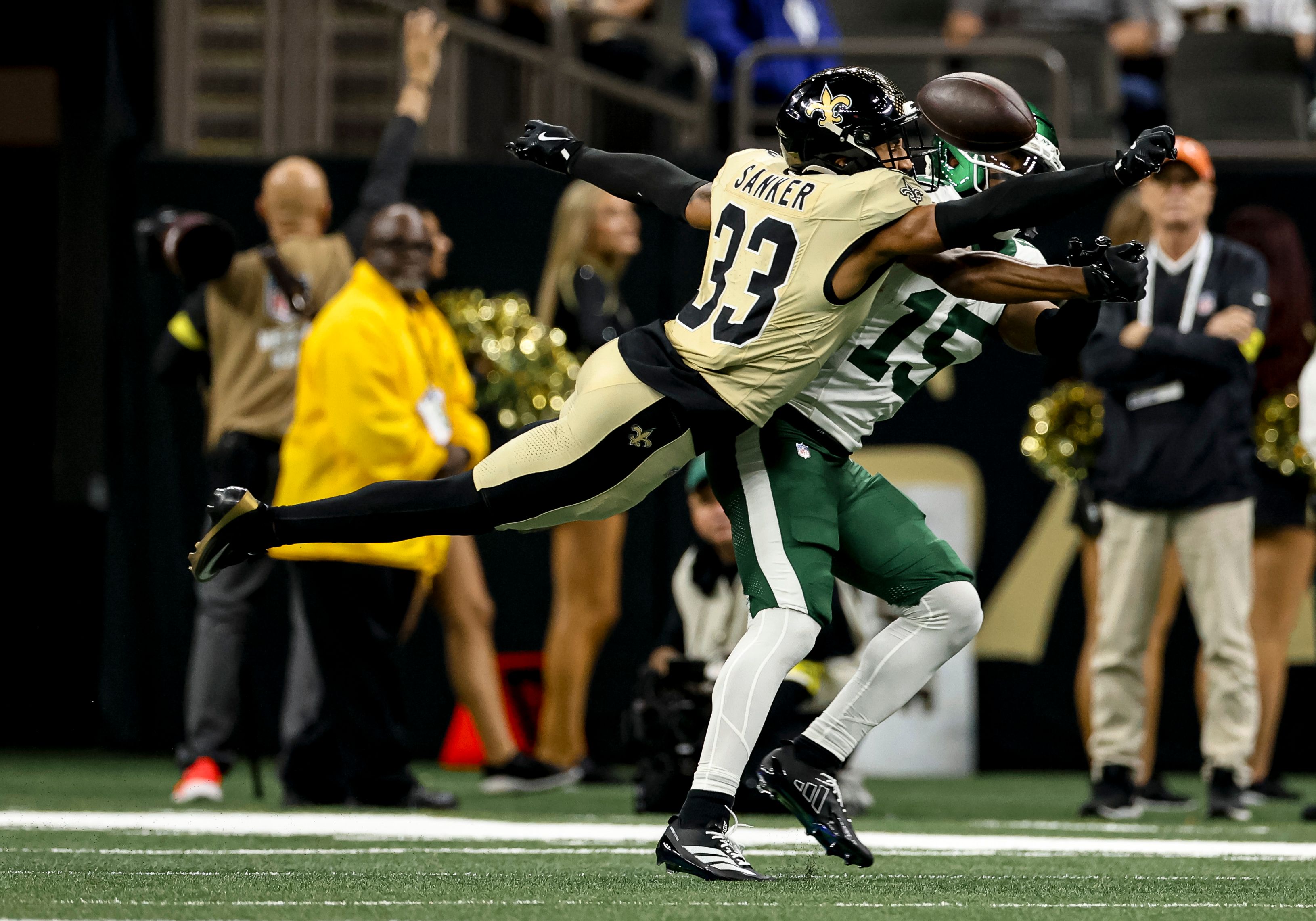 New Orleans Saints safety Jonas Sanker (33) deflects a pass against the New York Jets. Derick E. Hingle/NewOrleans.Football