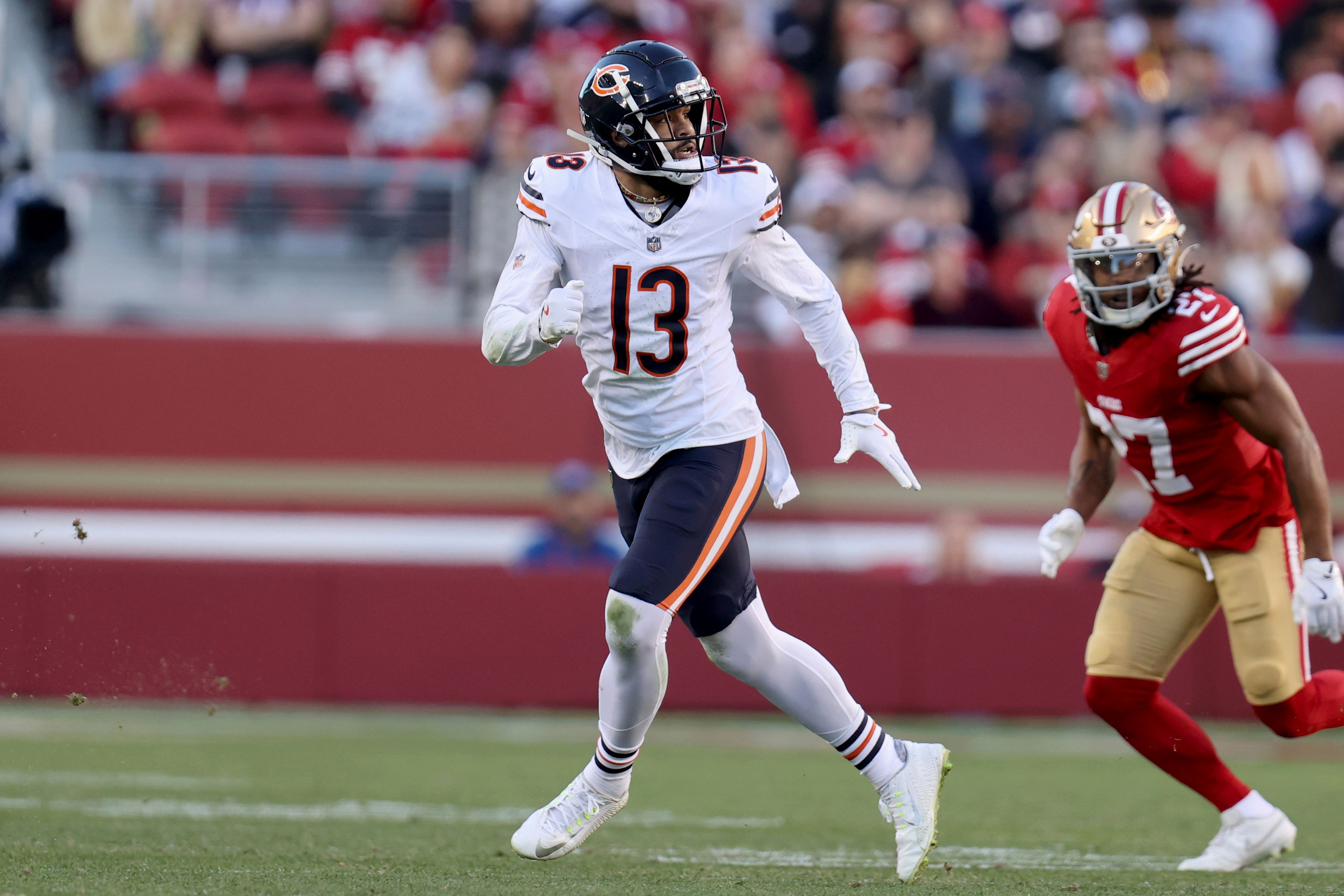 Chicago Bears wide receiver Keenan Allen (13) runs during an NFL football game against the San Francisco 49ers AP Photo/Scot Tucker)