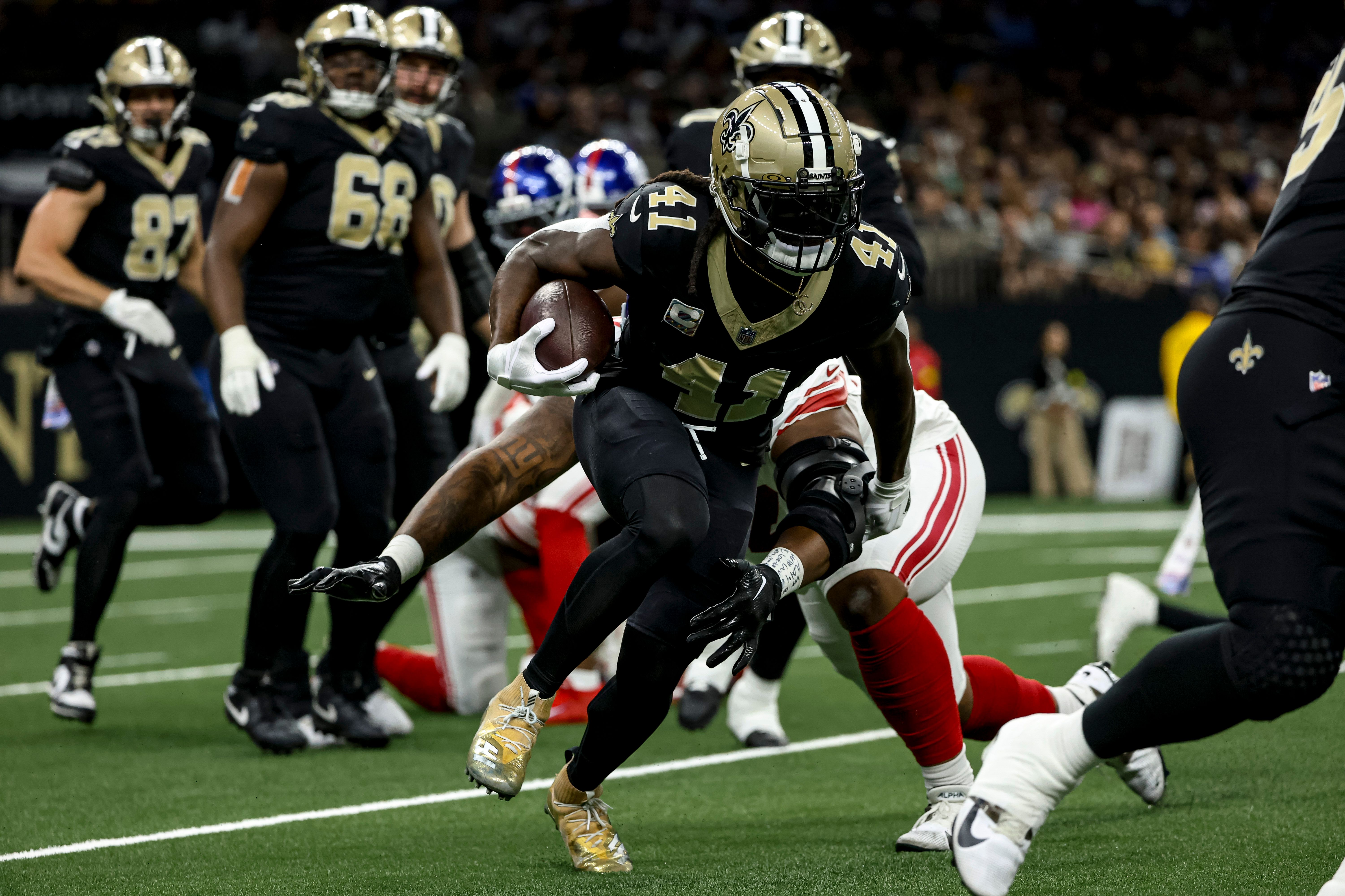 New Orleans Saints running back Alvin Kamara carries the ball against the New York Giants. Derick E. Hingle/NewOrleans.Football